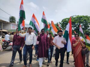 ନ୍ୟୁଜଗ୍ୟାଲେରି,ଭବାନୀପାଟଣା:କଳାହାଣ୍ଡି ଜିଲ୍ଲା ପ୍ରଶାସନ ପକ୍ଷରୁ ହର ଘର ତିରଂଗା କାର୍ଯ୍ୟକ୍ରମ ମା ମାଣିକେଶ୍ଵରୀ ବିଶ୍ୱବିଦ୍ୟାଳୟ ଠାରୁ ଏକ ବିଶାଳ ତ୍ରିରଙ୍ଗା ଶୋଭାଯାତ୍ରା ବାହାରି ଭବାନୀପାଟଣା ସହର ପରିକ୍ରମା କରାଯାଇଥିଲା। ଏହି ତ୍ରିରଙ୍ଗା ଶୋଭାଯାତ୍ରା ରେ ଜିଲ୍ଲାପାଳ ପାୱାର ସଚିନ ପ୍ରକାଶ, ଭି ସି, ମା ମାଣିକେଶ୍ଵରୀ ବିଶ୍ୱବିଦ୍ୟାଳୟ ଡଃ ନିବେଦିତା ନାଥ, ଅତିରିକ୍ତ ଜିଲାପାଳ ତନ୍ମୟ କୁମାର ଦରୱାନ,ମୁଖ୍ୟ ଉନ୍ନୟନ ଅଧିକାରୀ ଜିଲ୍ଲାପରିଷଦ ଦୟା ମୟ ପାଢି, ଜିଲ୍ଲା ସଂସ୍କୃତି ଅଧିକାରୀ ବିବେକାନନ୍ଦ ମହାନନ୍ଦ, ଜିଲ୍ଲା ପଞ୍ଚାୟତ ଅଧିକାରୀ ନୃସିଂହ ଚରଣ ପଟ୍ଟନାୟକ, ଜିଲ୍ଲା ସୂଚନା ଓ ଲୋକ ସମ୍ପର୍କ ଅଧିକାରୀ ହଳଧର ନିଆଲ, ନିର୍ବାହୀ ଅଧିକାରୀ ପୌରପାଳିକା ଚିନ୍ମୟ ନାୟକ, ବିଡିଓ ଚନ୍ଦନ ଭୋଇ, ଜିଲ୍ଲା ଶିଶୁ ସୁରକ୍ଷା ଅଧିକାରୀ ଶୈଳେନ୍ଦ୍ର ମହାପାତ୍ର, ଜିଲ୍ଲା ଶାରୀରିକ ଶିକ୍ଷା ଅଧିକାରୀ ରୂପସିଂ ରାଉତ, ଯୁବ ଅଧିକାରୀ ନେହେରୁ ଯୁବ କେନ୍ଦ୍ର ପ୍ରସନ୍ନ ମେହେର, ସାଂସଦଙ୍କ ପ୍ରତିନିଧି ଜୟ ଶଙ୍କର ନାୟକ, କବି ଡଃ ଭାବନି ସଙ୍କର ନିଆଲ, ଶିଶୁ ସୁରକ୍ଷା ୟୁନିଟ୍ ପ୍ରୋଗ୍ରାମ ଅଧିକାରୀ ଅଂଶୁମାନ ବାବୁ ଙ୍କ ସମେତ ବିଭିନ୍ନ ବିଭାଗୀୟ ଅଧିକାରୀ, ବିଦ୍ୟାଳୟ, ମହାବିଦ୍ୟାଳୟ ର ଶିକ୍ଷକ ଶିକ୍ଷୟିତ୍ରୀ, ଛାତ୍ରଛାତ୍ରୀ, ଜନପ୍ରତିନିଧି, ବରିଷ୍ଟ ନାଗରିକ, ଗଣମାଧ୍ୟମ ର ପ୍ରତିନିଧି ପ୍ରମୁଖ ଯୋଗଦେଇ ହାତରେ ତ୍ରିରଙ୍ଗା ଧରି ଦେଶ ପ୍ରେମ ,ଦେଶ ଭକ୍ତି ର ନାରା ଭାରତ ମାତା କି ଜୟ,ବନ୍ଦେ ମାତରମ୍, ଜୟ ଜବାନ, ଜୟ କିଷାନ ଧ୍ୱନି ଦେଇ ସହର ପରିକ୍ରମା କରିଥିଲେ, ସ୍ୱତଃପ୍ରବୃତ ଭାବେ ଜନସାଧାରଣ ଏଥିରେ ସାମିଲ ହୋଇ ତିରଂଗା ଯାତ୍ରା କାର୍ଯ୍ୟକ୍ରମ କୁ ସଫଳ କରିଥିଲେ।