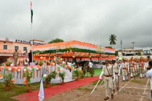 ନ୍ୟୁଜଗ୍ୟାଲେରି, ଭବାନୀପାଟଣା: କଳାହାଣ୍ଡି ଜିଲ୍ଲା ସ୍ତରୀୟ ୭୯ ତମ ସ୍ଵାଧୀନତା ଦିବସ ସ୍ଥାନୀୟ ଲାଲବାହାଦୁର ଶାସ୍ତ୍ରୀ ଖେଳ ପଡିଆ ଠାରେ ପାଳିତ ହୋଇଯାଇଛି। ଏହି ଅବସରରେ ପ୍ରାତଃ ସହରରେ ରାମ ଧୁନ୍, ପ୍ରଭାତ ଫେରି, ସହର ସ୍ଥିତ ମହାପୁରୁଷ ଙ୍କ ପ୍ରତିମୂର୍ତ୍ତି ରେ ମାଲ୍ୟାର୍ପଣ କରାଯାଇଥିଲା। ସ୍ଥାନୀୟ ଲାଲବାହାଦୁର ଶାସ୍ତ୍ରୀ ଷ୍ଟାଡିୟମ୍ ଠାରେ ପ୍ୟାରେଡ ଉତ୍ସବ ଅନୁଷ୍ଠିତ ହୋଇଥିଲା। ଏଥିରେ ମୁଖ୍ୟ ଅତିଥି ନିତ୍ୟାନନ୍ଦ ଗଣ୍ଡ ମନ୍ତ୍ରୀ ବିଦ୍ୟାଳୟ ଓ ଗଣଶିକ୍ଷା, ଅନୁସୂଚିତ ଜାତି ଜନଜାତି, ସଂଖ୍ୟା ଲଘୁ, ପଛୁଆ ବର୍ଗ କଲ୍ୟାଣ, ସାମାଜିକ ସୁରକ୍ଷା ଓ ଭିନ୍ନକ୍ଷମ ସଶକ୍ତ କରଣ ଓଡିଶା ସରକାର ଯୋଗଦେଇ ଆନୁଷ୍ଠାନିକ ଭାବେ ଜାତୀୟ ପତାକା ଉତ୍ତୋଳନ କରି ସମ୍ମିଳିତ ପ୍ୟାରେଡ ପରିଦର୍ଶନ ପ୍ୟାରେଡ ର ଅଭିବାଦନ ଗ୍ରହଣ କରି ସମବେତ ଜନସାଧାରଣ ଙ୍କୁ ଉଦବୋଧନ ଦେଇଥିଲେ।