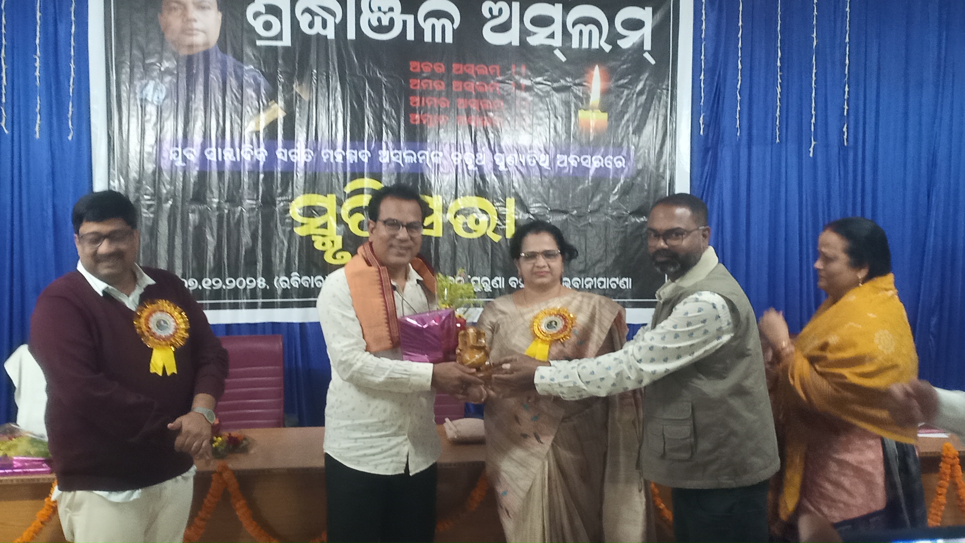 ନ୍ୟୁଜ ଗ୍ୟାଲେରି, ଭବାନୀପାଟଣା: ସାମ୍ବାଦିକ ମହମ୍ମଦ ଅସଲମ୍ ଙ୍କ ଚତୁର୍ଥ ସ୍ମୃତି ସମାରୋହ ଭବାନୀପାଟଣା ସ୍ଥିତ ଅମଲା ଭବନ ଠାରେ ଅନୁଷ୍ଠିତ ହୋଇଯାଇଛି । ସ୍ବର୍ଗତ ଯୁବ ସାମ୍ବାଦିକ ମହମ୍ମଦ ଅସଲମ୍ ଙ୍କ ଫଟୋଚିତ୍ର ରେ ପୁଷ୍ପ ଅର୍ପଣ ଏବଂ ଦୀପ ଜାଳିବା ପରେ ମୌଲାନା ଇର୍ଫାନ୍ ଶାନ୍ତି ପ୍ରାର୍ଥନା ଏବଂ କଣ୍ଠଶିଳ୍ପୀ ଜଗନ୍ନାଥ ତ୍ରିପାଠୀ ଭଜନ ପରିବେଷଣ କରିଥିଲେ। ପରେ ସ୍ମୃତିସଭା ଆରମ୍ଭ ହେଇଥିଲା। ମହମ୍ମଦ ଅସଲମ ସ୍ମୃତି କମିଟି ତରଫରୁ ଆୟୋଜିତ ଏହି ଶ୍ରଦ୍ଧାଞ୍ଜଳୀ ସଭାରେ ମୁଖ୍ୟ ଅତିଥି ଭାବରେ ମାଁ ମାଣିକେଶ୍ଵରୀ ବିଶ୍ବବିଦ୍ୟାଳୟର କୁଳପତି ଡଃ ନିବେଦିତା ନାଥ ଯୋଗଦେଇ ସାମ୍ବାଦିକ ମାନେ ଲୋକଙ୍କ ଶାଣିତ ସ୍ୱର ହୁଅନ୍ତୁ ବୋଲି ମତ ଦେଇଥିଲେ। ଏହି କାର୍ଯ୍ୟକ୍ରମରେ ସମ୍ମାନୀତ ଅତିଥି ଭାବରେ ଅତିରିକ୍ତ ଜିଲ୍ଲାପାଳ ତନ୍ମୟ କୁମାର ଦରୱାନ, ବରିଷ୍ଠ ସାମ୍ବାଦିକ ଭକ୍ତ ତ୍ରିପାଠୀ, ମୁଖ୍ୟ ବକ୍ତା ଭାବେ ବିଶିଷ୍ଟ ସାହିତ୍ୟିକ ଓଟିଭି ର ସହ ସମ୍ପାଦକ ଅମରେଶ ବିଶ୍ବାଳ ପ୍ରମୁଖ ଯୋଗଦେଇଥିଲେ।